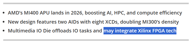 Similarly, AMD could integrate AI accelerators from Xilinx FPGA and AI Engine IP directly into future CPUs and APUs, creating unique advantages such as adaptable AI inference at the CPU level.