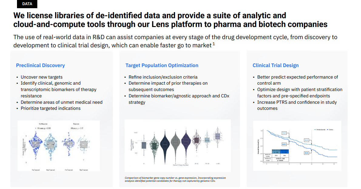 All of the sequencing and clinical tests generate structured, de-identified data, which is exactly what pharma companies need for drug development, clinical trial design, and AI model training.